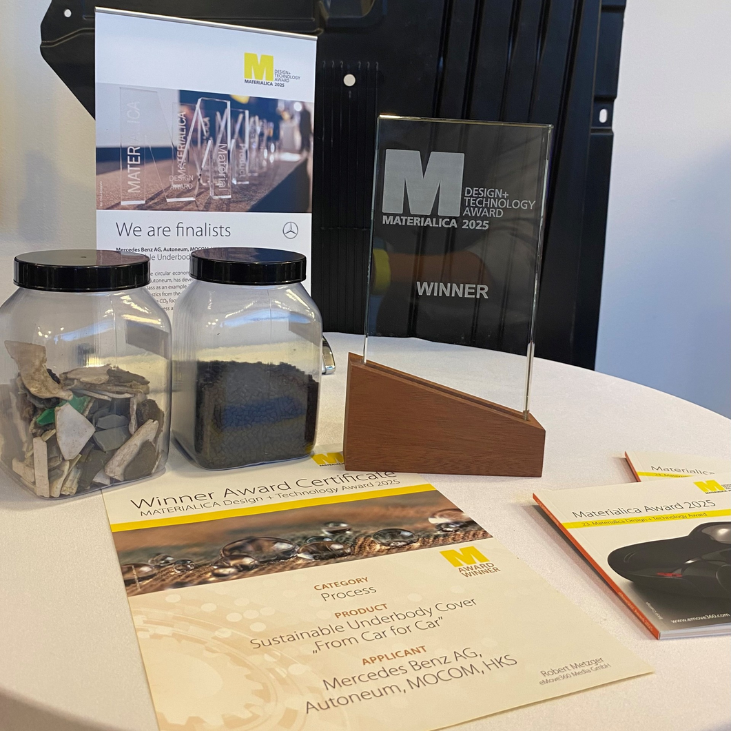 Autoneum partnered with Mercedes-Benz AG and other automotive suppliers to win the Materialica Design + Technology Award in the Process category. The award recognizes the innovative project “From Car to Car”, which uses 100 percent recycled polypropylene with glass fiber (PP-GF20) from end-of-life vehicles to produce underbody panels. This circular approach reduces the CO₂ footprint by approximately 40 percent compared to conventional solutions and demonstrates Autoneum’s commitment to sustainable mobility and resource efficiency. The award was presented during eMove360° Europe 2025 in Munich, Germany.